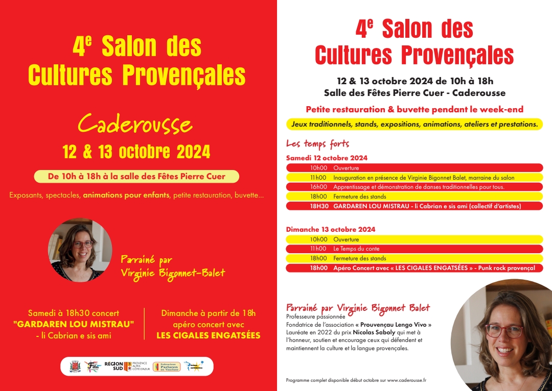 animations, chants, danses, et diverses manifestations de la culture provençale avec défense de sa langue. Virginie Bigonnet (Prouvenço Lengo Vivo) parraine l'évènement