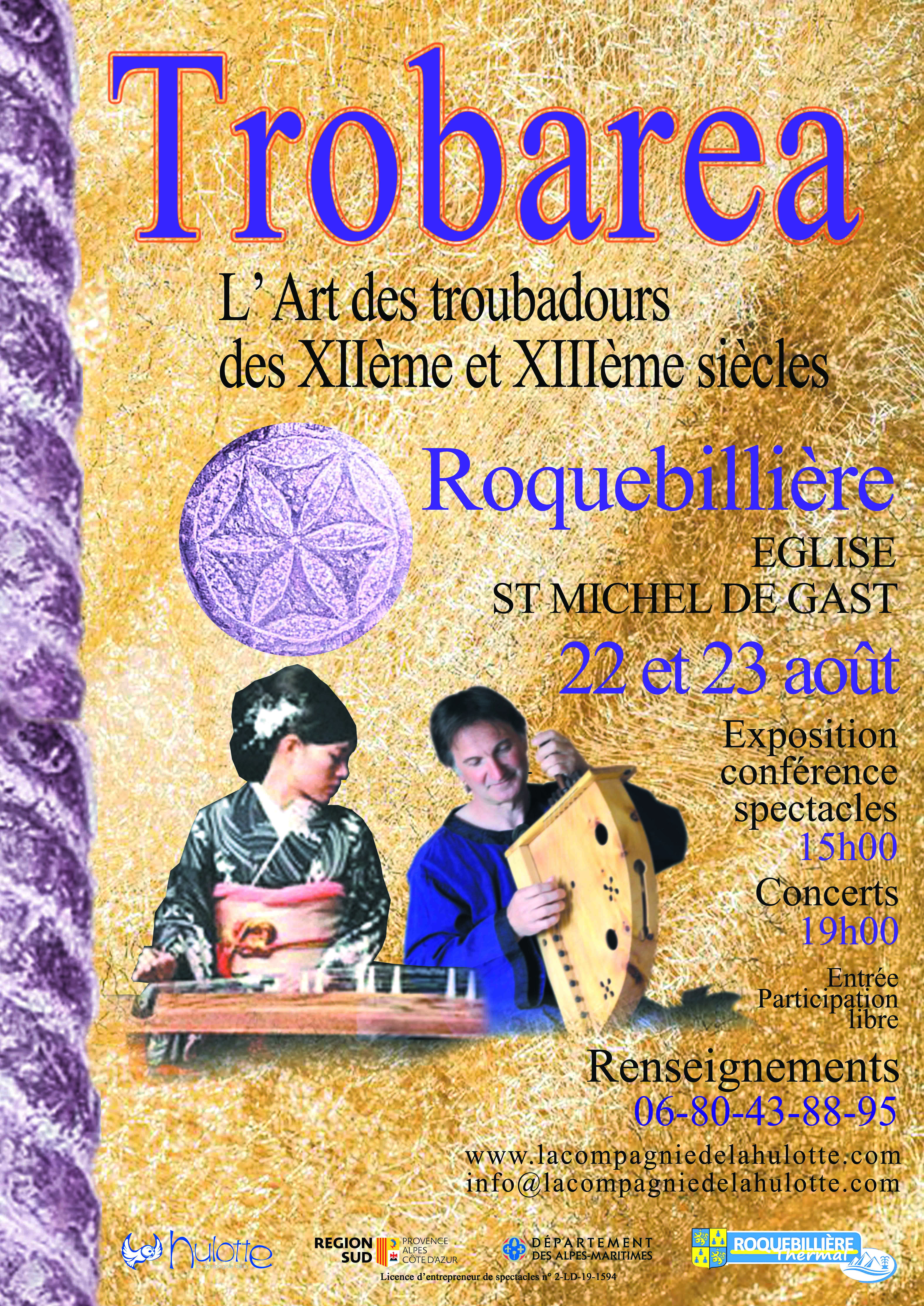 Les voici proposant deux dates dans cette commune des Alpes-Maritimes. Ne les manquez pas : le à l'Eglise de Gast de Roquebilière les 22 et 23 aout à 15 et 19h, auparavant le 1er aout à 21 h à l'Eglise de Belvédère, Ajoutez y , toujours à l'Eglise de Belvédère, mais dès les 11 et 25 juillet, le concert conférence personnel de Domitille Vigneron, sur la chanson d'oc à travers l'histoire |